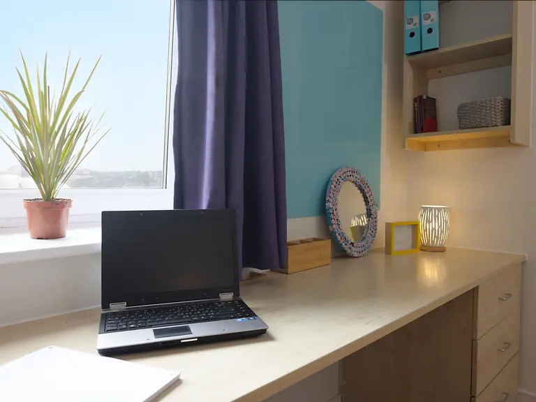 Share a homely kitchen-diner with other students while enjoying the privacy of your own modern room with a swanky bathroom to match! Sizes of this room-type vary from 14.5 – 15.5 sq m. and you'll be sharing a four bedroom flat. Your room will have plenty of storage space and a small double bed. All included: Internet, Water, Heating and air conditioning, 24h security, Unlimited access to common areas: gym, study room, games room…