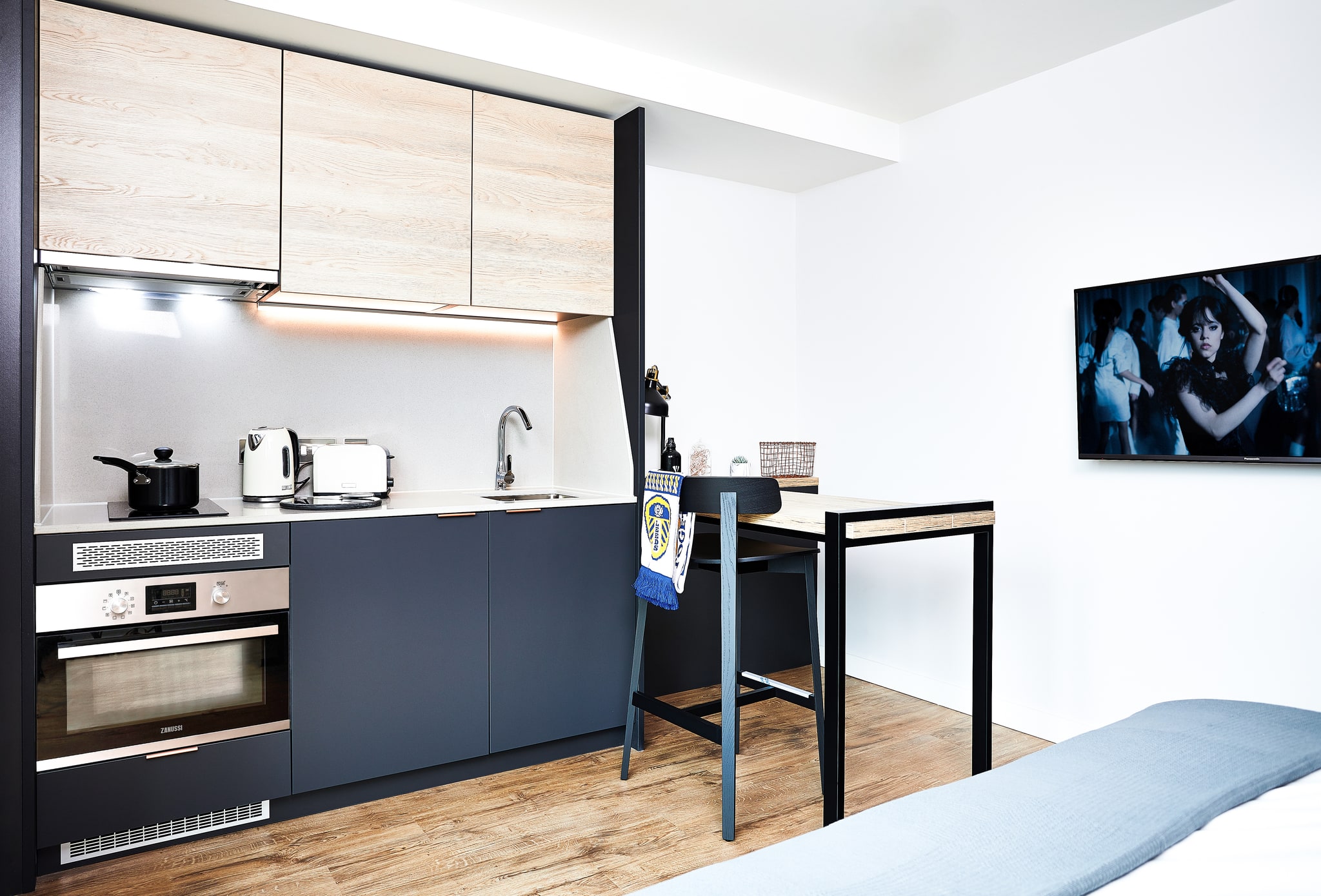 Our private student accommodation is located at the top of New Briggate, just a short walk from the University of Leeds, and directly opposite the Trinity Centre. Neighbors also include the Belgrave Music Hall & Canteen, City Museum, Art Gallery and Grand Theatre. What’s included is a spacious hub, bi-weekly housekeeping, private dining room, cinema room, pool & table tennis tables, 24/7 gym access, and free weekday breakfast. Unit: Classic Plus (VSL-1501). Academic year: 2026 / 27.