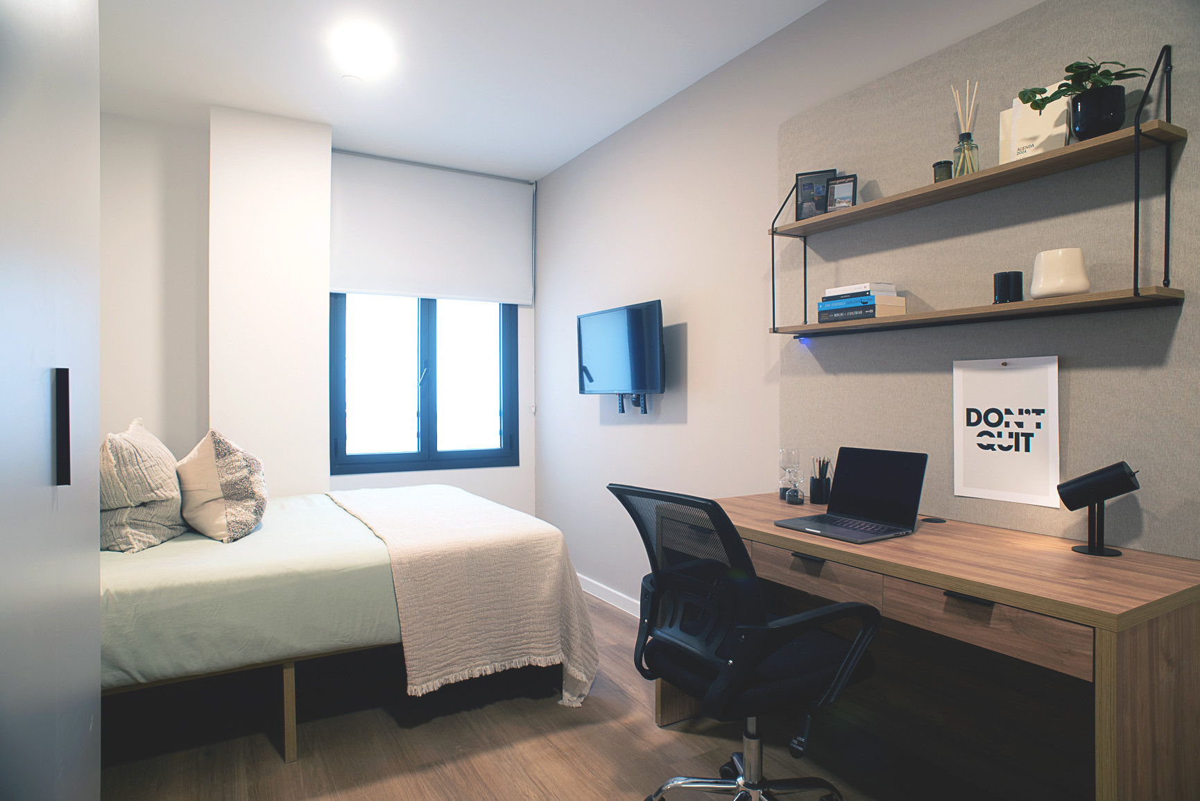 Príncipe Pío offers premium flex-living accommodation just steps from Madrid’s historic centre, Plaza Mayor, and the Royal Palace. With the Príncipe Pío transport hub and shopping centre nearby, plus top universities within easy reach, you’re perfectly placed to enjoy the best of city life and campus living. Our residence is designed to elevate your experience of living and studying in Madrid — with high-speed Wi-Fi, a fully equipped gym, cinema and gaming rooms, quiet areas to unwind, an exclusive dining space, and modern study and coworking zones. Everything you need to live, work, and socialise in comfort. If you don’t get your visa or your plans change, we’ve got you covered. Our Classic Studios, sized between 20–28 m², are located on floors 1 to 11. These self-contained studios are ideal for those who want the freedom and privacy of their own space, with full access to our vibrant social areas and community events. What’s included in your Classic Studio: * 135–150 cm compact double bed * Study desk and chair * Wardrobe with shelving * Full-length mirror * Private ensuite bathroom * Kitchenette with: induction hob, combi microwave-oven, fridge, storage, and breakfast bar with stool Perfectly located for your life in Madrid: * 28‑min metro to Universidad Complutense de Madrid * 30‑min bus to Universidad Politécnica de Madrid * 20‑min metro to Universidad Pontificia Comillas * 25‑min bus to CEU San Pablo With bi-weekly cleaning, laundry facilities, outdoor terraces, a 24/7 Residence Team, the App and a full calendar of events, you’ll feel at home from day one. Make Príncipe Pío your new home and join the community today!