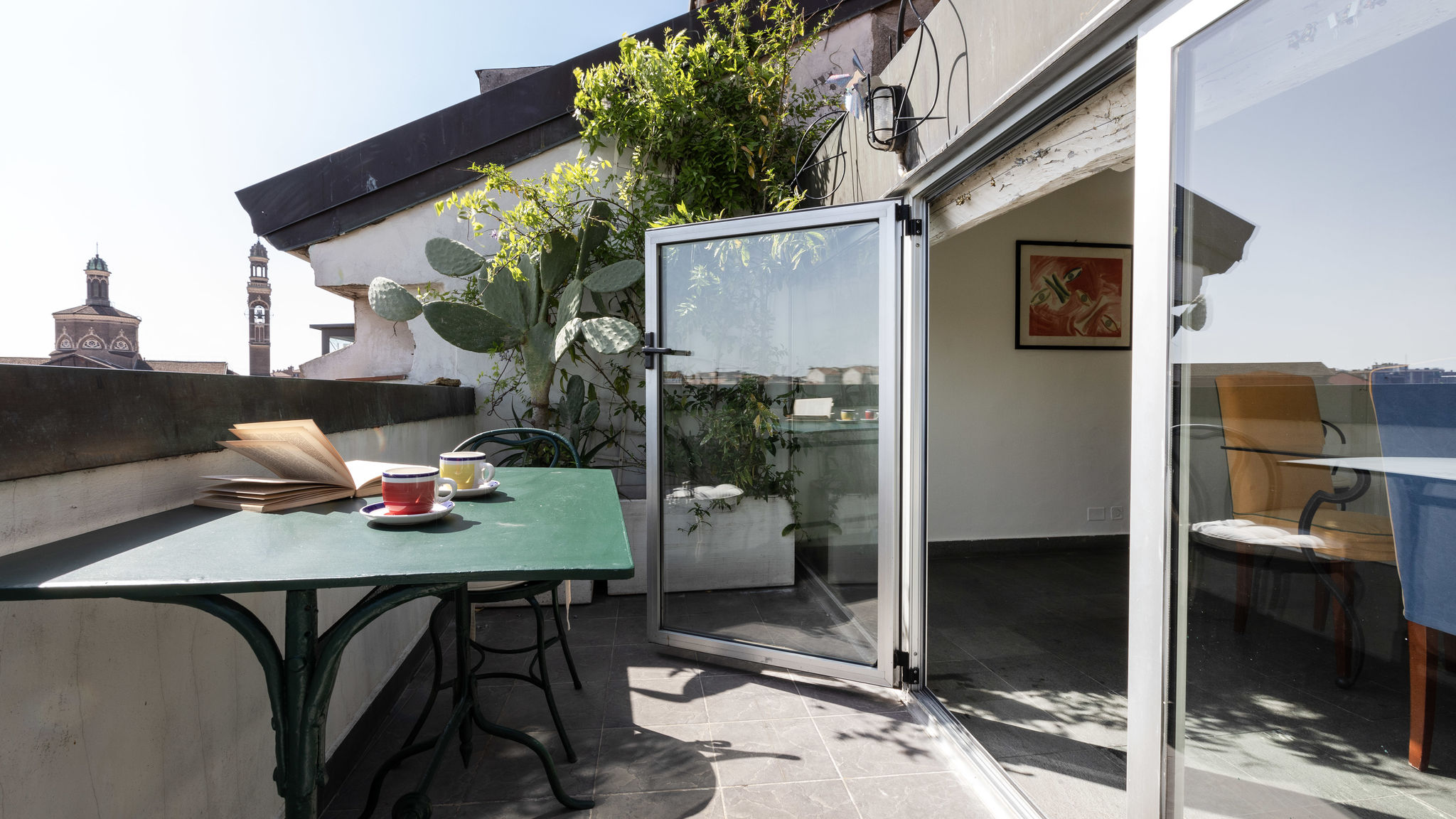 In the heart of Milan, in one of the most lively and loved areas of the city, is Vigevano 7, an apartment that conquers at first glance with its elegant style, modern comfort and an enchanting view of the Milanese rooftops. Located on the fourth floor without an elevator, this space is perfect for those looking for a quiet and welcoming retreat after exploring the city. The climb is rewarded by a rare and precious detail: a private terrace where you can sip a glass of wine at sunset or enjoy breakfast with your eyes lost between the red tiles and the profiles of the historic buildings. A suggestive corner that offers a unique atmosphere, suspended between intimacy and urban charm. Inside, the apartment opens onto a bright living area, furnished with contemporary taste and careful details. Here, two comfortable sofas are transformed into twin beds, offering space for up to 4 people to sleep without sacrificing comfort. Ideal for couples, friends or families looking for a cozy base for a short or medium stay. The fully equipped kitchen allows you to prepare homemade dishes, while the cozy and quiet sleeping area guarantees deep sleep. Every room is designed to make you feel at home, with modern equipment such as air conditioning, fast Wi-Fi, washing machine and smart TV. The location is strategic, in the heart of the Navigli, among streets animated by iconic clubs, creative cafés and independent art galleries. A few steps from the Porta Genova metro (Line 2- Green), you'll be connected to everything Milan has to offer, but you can always return to your corner of peace suspended between sky and city. Vigevano 7 is not just an apartment, it's an invitation to experience Milan with new eyes — between emotion, beauty and the precious feeling of feeling exactly where you want to be.