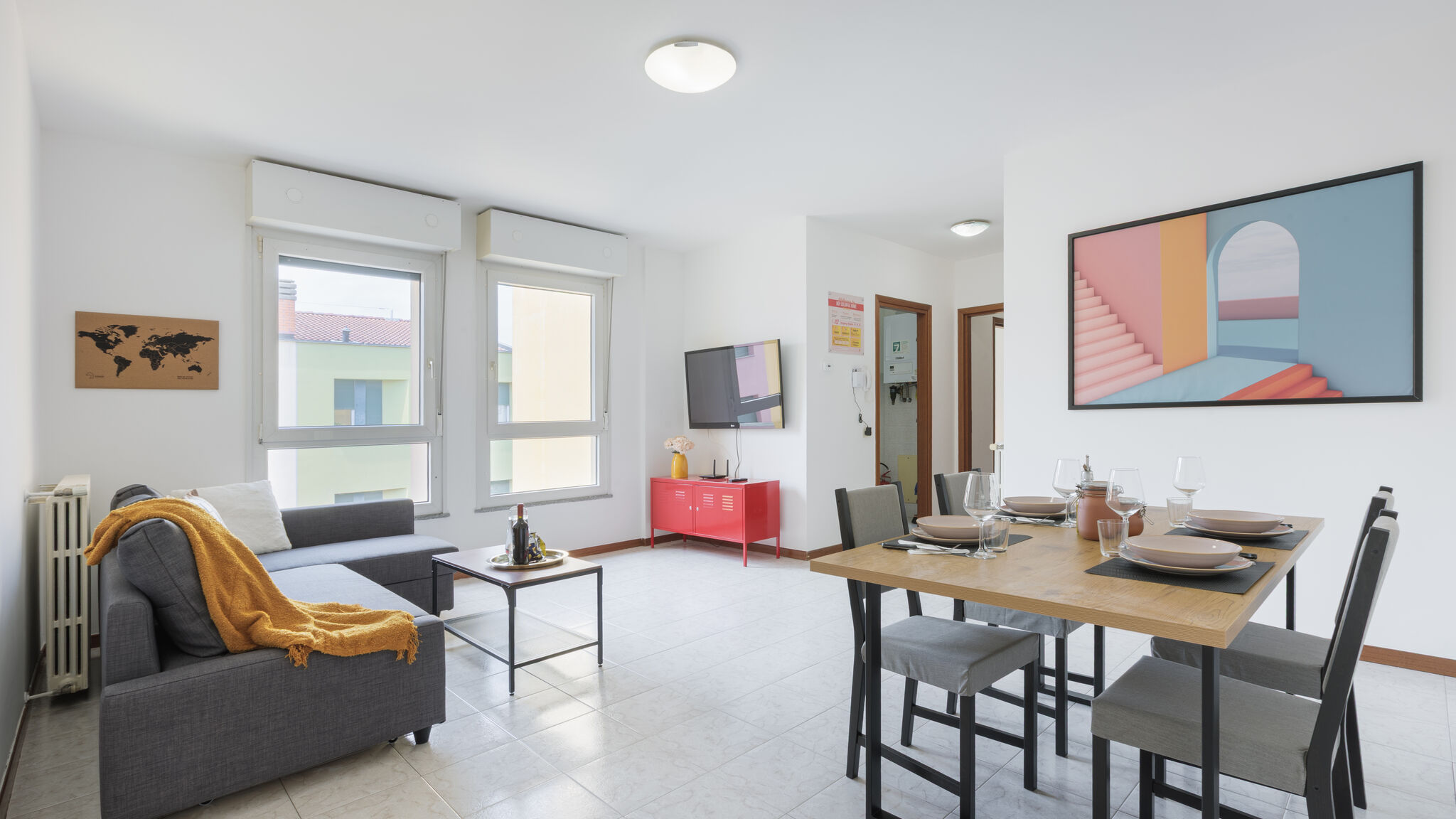 Close to Milan Bergamo Airport- Flexible check-in, even late (self check-in)- 2-min walk from bus stop (to airport) This colorful 1-bedroom flat has a great location, perfect if you're flying via Bergamo… but not only! - Bergamo – 15 min by car- Milan – 1 h by car or airport bus- Central spot to explore the main lakes of Northern Italy This vibrant and colorful accommodation is fully equipped and offers every comfort, located in a quiet residential area just a short distance from Bergamo Airport: - Large double bed & sofa bed for a restorative sleep- Bed linen and towels included- Baby cot (not included in the rate, available on request)- Work area with free WIFI LIVING ROOM: - Large Sofa Bed- TV with Netflix- Free Wi-Fi- Dining table with chairs BATHROOM: - Bathroom with tub and handheld shower- Towels, shampoo, and shower gel provided- First aid kit available- Hairdryer- Washing machine (detergent provided on site)- Iron and ironing board KITCHEN: - Fully equipped- Gas stove- Electric oven- Microwave- Dishwasher- Kettle- Coffee, tea bags, sugar, salt, oil, and dish soap included The house is easily accessible: - By car: there is a large parking area near the property with many free parking spots. However, availability is not guaranteed as it is a public parking lot and not part of the property.- By bus via Line 1 (starting from the airport) – more information at the end of this section PUBLIC TRANSPORT INFO (ATB BUSES) TICKETS: ATB tickets can be purchased:- Through the “ATB Mobile” app using a credit card. NOTE: tickets are only usable on the device used for purchase and cannot be transferred or shared (e.g., via screenshot).- Onboard vending machines, using coins or bank cards. For more details, visit the official "atb bergamo" website. BUS STOPS NEAR THE HOUSE: To plan a specific route with detailed schedules, we recommend visiting the official ATB Bergamo portal. Line 1: direction Airport and Bergamo - Stop 812 Grassobbio Colombo, 24050 Grassobbio BG Co-hosts Mattia and Gianluca are available for any needs. Self check-in available 24/7 (detailed instructions will be provided after booking so it can be done independently). Follow us @TerraViva Homes