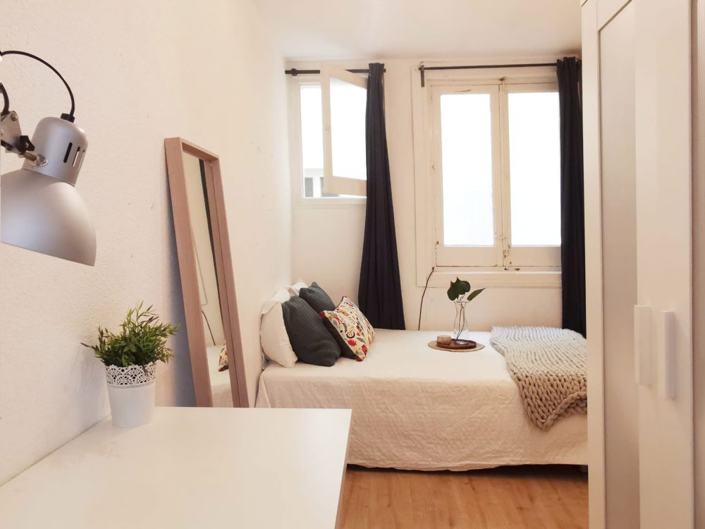 "Warm room in Santa Catalina Street, in the centre of Madrid. It's fully furnished with a wardrobe, a double bed (135x190), a desk with a chair and a lamp and an electric heater. It also has a door lock. The room has a very nice window on the ceiling, and it measures 8.85 m². If you're a young international looking for a pleasant place to live, this room is perfect for you. *Bedding is not included, only a mattress cover is provided." - Don't smoke - Pets are not allowed - Parties are forbidden - Take out the trash daily - Short-term visits are allowed -be informed that in this flat a device has been installed in order to allow the monitoring of the noise level (decibels) 24 hours a day. The system emits an alert whenever the sound level exceeds the maximum allowed by the Community of Madrid, mainly between 11pm and 6am.