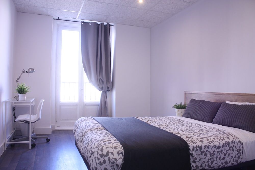 Double room with balcony in Puerta del Sol, with wonderful views to the square. The room has a double bed (135x190), a double wardrobe, a bedside table and a desk with a lamp. The room measures 12.99 m², it has an electric radiator and a door lock. It has the necessary space for young students and workers. *Bedding is not included, only a matress cover is provided. - Don't smoke - Pets are not allowed - Parties are forbidden - Take out the trash daily - Short-term visits are allowed - be informed that in this flat a device has been installed in order to allow the monitoring of the noise level (decibels) 24 hours a day. The system emits an alert whenever the sound level exceeds the maximum allowed by the Community of Madrid, mainly between 11pm and 6am