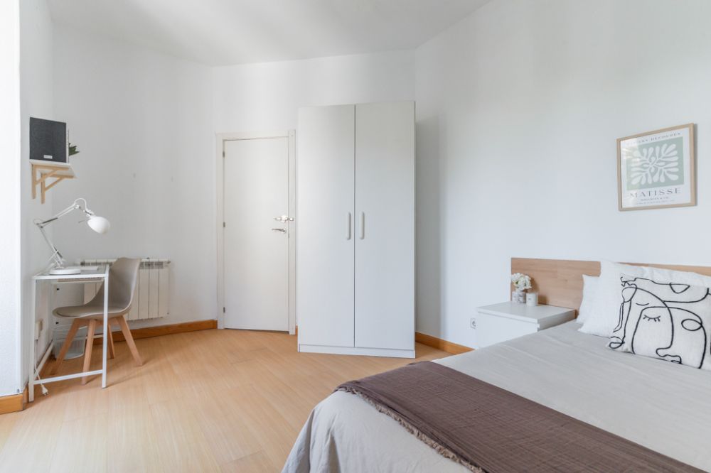 Ideal room in Bailén with a balcony overlooking La Latina neighborhood and its charming streets. It comes equipped with a double bed (135 cm), a desk, a chair, a bedside table, a lamp, a wardrobe and a mirror. Highly recommended for young students and workers who want to live in a place with wonderful views. The room measures 11 m², it has a heater and a door lock. *Bedding is not included, only a mattress cover is provided. - Don't smoke - Pets are not allowed - Parties are forbidden - Take out the trash daily - Short-term visits are allowed - be informed that in this flat a device has been installed in order to allow the monitoring of the noise level (decibels) 24 hours a day. The system emits an alert whenever the sound level exceeds the maximum allowed by the Community of Madrid, mainly between 11pm and 6am.