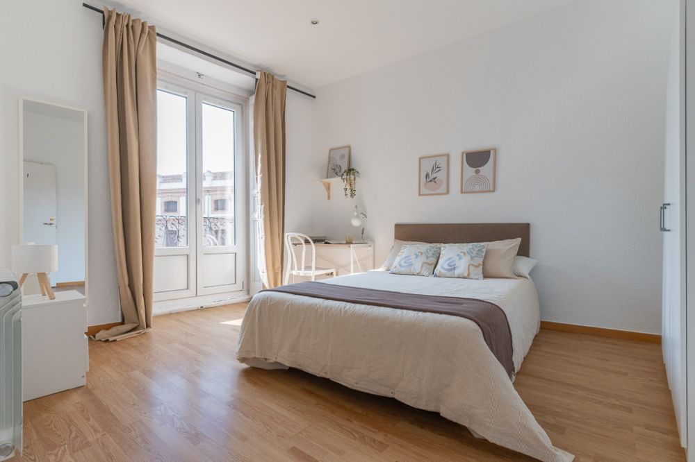 Very bright room in the main centre of Madrid, located in La Latina neighbourhood. The room, which is 14 m², offers a balcony overlooking Redondilla Street. It's furnished with a double bed, a desk, a lamp, a mirror, a chair and a double wardrobe. Besides, it has a door lock and heating, so it's the perfect room for your stay in Madrid. *Bedding is not included, only a mattress cover is provided. - Don't smoke - Pets are not allowed - Parties are forbidden - Take out the trash daily - Short-term visits are allowed - be informed that in this flat a device has been installed in order to allow the monitoring of the noise level (decibels) 24 hours a day. The system emits an alert whenever the sound level exceeds the maximum allowed by the Community of Madrid, mainly between 11pm and 6am.