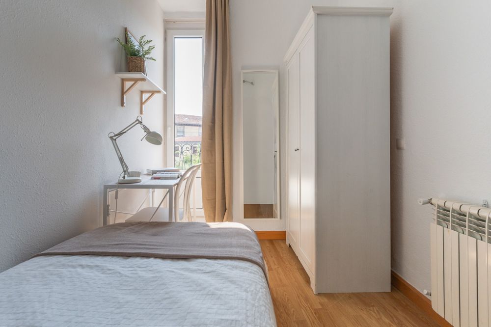 Charming room in the centre of Madrid, located in La Latina neighbourhood. The size of this charming room is 8 m², and it has a window with views to Redondilla Street. It's provided with a single bed, a desk, a lamp, a mirror, a chair and a single wardrobe. The room also has a door lock and heating. If you're a young student or worker, this room is made for you. *Bedding is not included, only a mattress cover is provided. - Don't smoke - Pets are not allowed - Parties are forbidden - Take out the trash daily - Short-term visits are allowed - be informed that in this flat a device has been installed in order to allow the monitoring of the noise level (decibels) 24 hours a day. The system emits an alert whenever the sound level exceeds the maximum allowed by the Community of Madrid, mainly between 11pm and 6am.