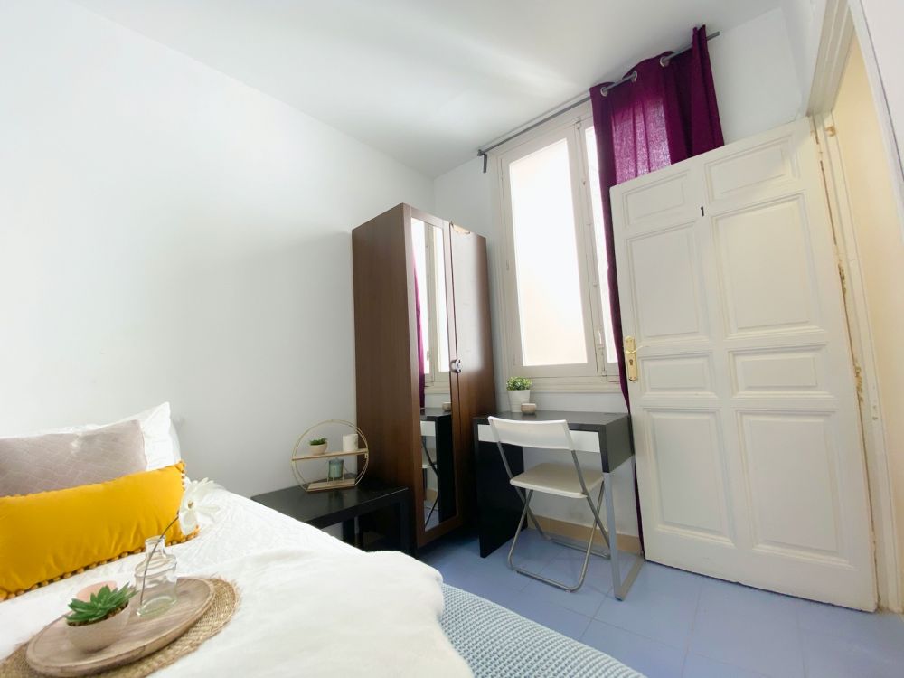 Single room on Calle de Galdo. This 6.03 m² room is furnished with a 90 cm single bed, bedside table, single wardrobe with mirror, and desk with chair. The kitchen, dining room, and bathrooms are shared with the other tenants. *Bed linen is not included, only the mattress cover is provided. - Don't smoke - Pets are not allowed - Parties are forbidden - Take out the trash daily - Short-term visits are allowed - be informed that in this flat a device has been installed in order to allow the monitoring of the noise level (decibels) 24 hours a day. The system emits an alert whenever the sound level exceeds the maximum allowed by the Community of Madrid, mainly between 11pm and 6am.