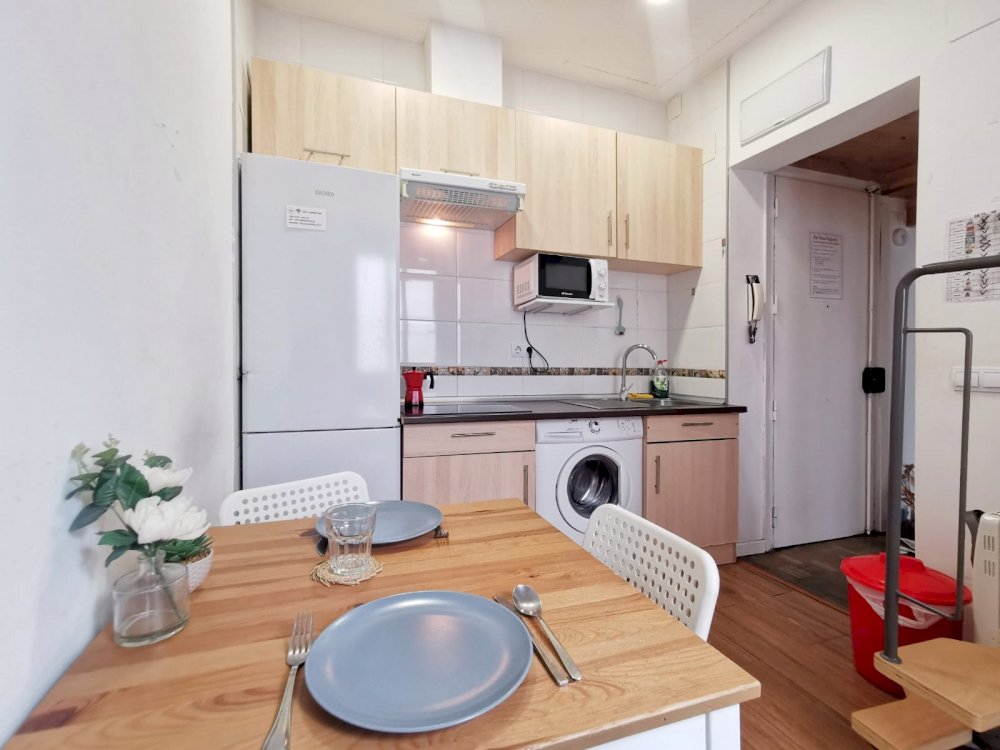 "Nice double room in Madrid, located in Carlos Arniches Street. It's equipped with a double bed (150x190), a desk with chair and a lamp, a wardrobe and an electric heater. In addition, it has a window, which makes the room very bright. It measures 8 m² and has a door lock. In this room, young students and workers will feel like home. *Bedding is not included, only a mattress cover is provided." - Don't smoke - Pets are not allowed - Parties are forbidden - Take out the trash daily - Short-term visits are allowed - be informed that in this flat a device has been installed in order to allow the monitoring of the noise level (decibels) 24 hours a day. The system emits an alert whenever the sound level exceeds the maximum allowed by the Community of Madrid, mainly between 11pm and 6am.