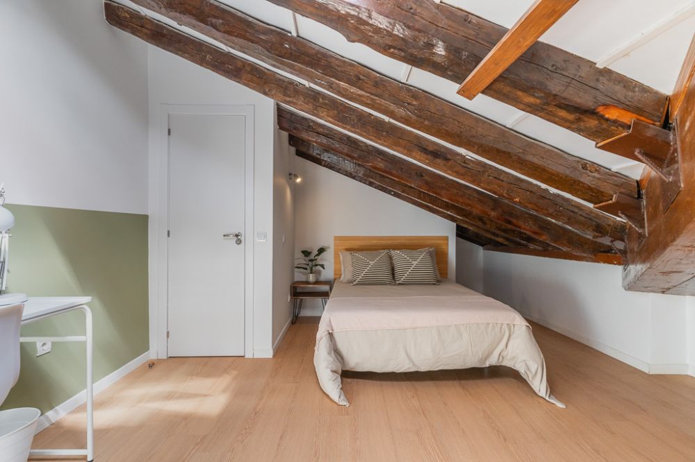 Spacious room on Preciados Street, on the second floor of the apartment, in the heart of Madrid. This 17.00 m² room is furnished with a 1.35 m double bed, a 3-door wardrobe with a mirror, desk with lamp and chair, bedside table, and a fan. The kitchen and dining area are shared with the other tenants. Bedding is not included; only the mattress cover is provided. - Don't smoke - Pets are not allowed - Parties are forbidden - Take out the trash daily - Short-term visits are allowed - be informed that in this flat a device has been installed in order to allow the monitoring of the noise level (decibels) 24 hours a day. The system emits an alert whenever the sound level exceeds the maximum allowed by the Community of Madrid, mainly between 11pm and 6am.
