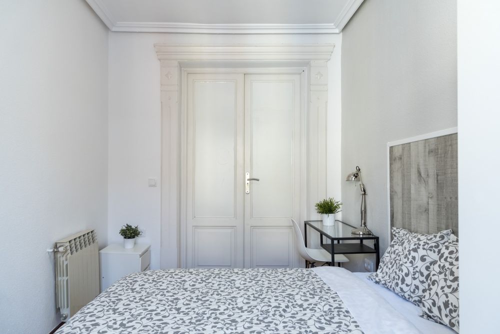 "Cozy modern room in Conde de Romanones. It's equipped with a double bed (135x190) a wardrobe, a bedside table and a desk with a chair and a lamp. It's very bright, thanks to a small exterior balcony. Young students and workers will feel like home here, in the city centre. The size of the rom is 9.95 m² y tiene cerradura propia. *Bedding is not included, only a mattress cover is provided - Don't smoke - Pets are not allowed - Parties are forbidden - Take out the trash daily - Short-term visits are allowed - be informed that in this flat a device has been installed in order to allow the monitoring of the noise level (decibels) 24 hours a day. The system emits an alert whenever the sound level exceeds the maximum allowed by the Community of Madrid, mainly between 11pm and 6am.