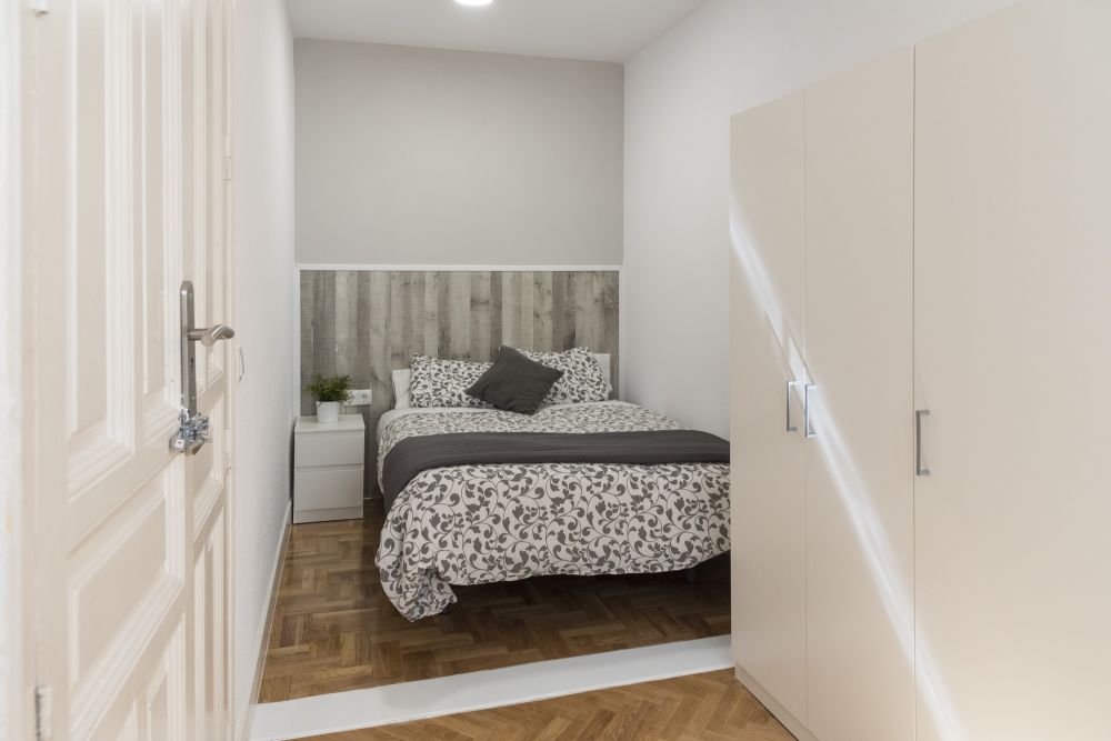 "Bright room in Conde de Romanones, very well located in the centre of Madrid. The room is furnished with a double bed (135x190cm) a wardrobe, a small table and a desk with a lamp and a chair. The size of the room Room is 12.24 m², here you will have a very pleasant stay. It includes a door lock. *Bedding is not included, only a mattress cover is provided. - Don't smoke - Pets are not allowed - Parties are forbidden - Take out the trash daily - Short-term visits are allowed - be informed that in this flat a device has been installed in order to allow the monitoring of the noise level (decibels) 24 hours a day. The system emits an alert whenever the sound level exceeds the maximum allowed by the Community of Madrid, mainly between 11pm and 6am.