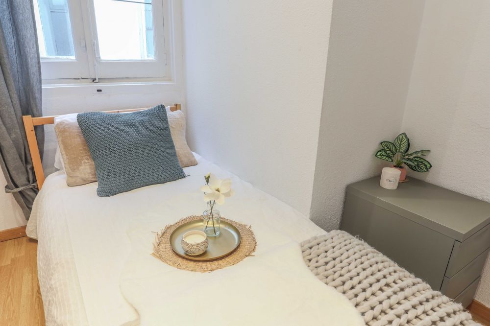 Cozy room in the main centre of Madrid, located in La Latina neighbourhood. It has a window with views to the interior courtyard of the building. It comes equipped with a single bed, a desk, a lamp, a bedside table, a chair and an open concept single wardrobe. The size of the room is 8 m². It's perfect for your stay in Madrid, it included a door lock and heating. *Bedding is not included, only a mattress cover is provided. - Don't smoke - Pets are not allowed - Parties are forbidden - Take out the trash daily - Short-term visits are allowed - be informed that in this flat a device has been installed in order to allow the monitoring of the noise level (decibels) 24 hours a day. The system emits an alert whenever the sound level exceeds the maximum allowed by the Community of Madrid, mainly between 11pm and 6am.