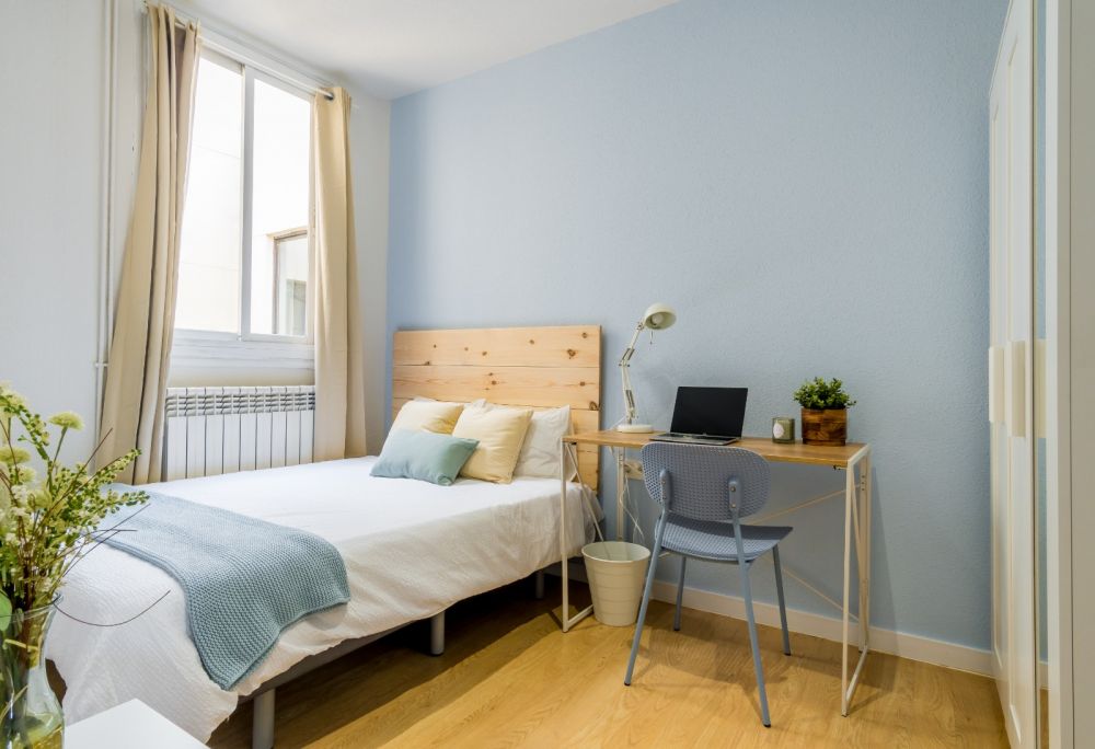 Cozy room 5 minutes away from Malasaña, in Alberto Aguilera Street. It's equipped with a double bed (135cm), a bedside table, a double wardrobe, a desk with a chair, a lamp, and interior window which allows fresh air. The room measures is 9.01 m², it has heating, air conditioning and a door lock. It's perfect for young students and workers who want to live in one of the best areas of Madrid. *Bedding is not included. - No smoking - No pets allowed - No parties - Trash must be taken out daily - Short-term visitors are allowed - be informed that in this apartment is installed a device that allows to control the noise level or decibels 24 hours a day, issuing an alert when the sound level exceeds the maximum allowed by the Community of Madrid, mainly between 23.00 and 6.00 hours.