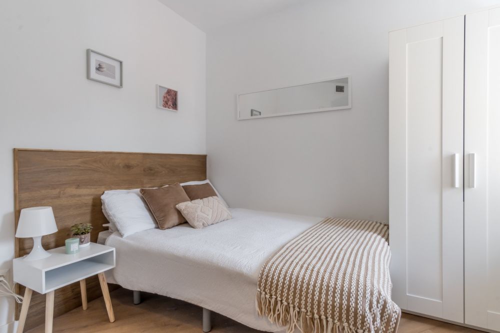 Charming double room located in Baleares street, in the area of Madrid Rio. Fully equipped with a double bed (135 cm), bedside table, wardrobe, desk with chair and lamp and a beautiful window with ideal lighting and charm. The room has air conditioning, private bathroom, TV and own lock. It is ideal for young students and workers who want to feel at home. *Bed linen is not included, only mattress cover is provided. - Don't smoke - Pets are not allowed - Parties are forbidden - Take out the trash daily - Short-term visits are allowed - be informed that in this flat a device has been installed in order to allow the monitoring of the noise level (decibels) 24 hours a day. The system emits an alert whenever the sound level exceeds the maximum allowed by the Community of Madrid, mainly between 11pm and 6am