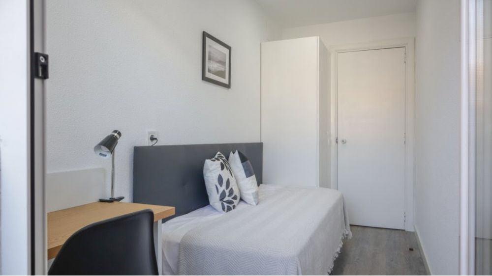 Room (5,47m²) with a single bed and a terrace (2,21m²) in Nuevos Ministerios in Orense Street. It's fully equipped with a desk, a lamp, wardrobe and a mattress. The perfect room for a calming stay in the center of Madrid. *Bedding is not included, only a mattress cover is provided and each room h its own lock. - Don't smoke - Pets are not allowed - Parties are forbidden - Take out the trash daily - Short-term visits are allowed * be informed that in this flat a device has been installed in order to allow the monitoring of the noise level (decibels) 24 hours a day. The system emits an alert whenever the sound level exceeds the maximum allowed by the Community of Madrid, mainly between 11pm and 6am.