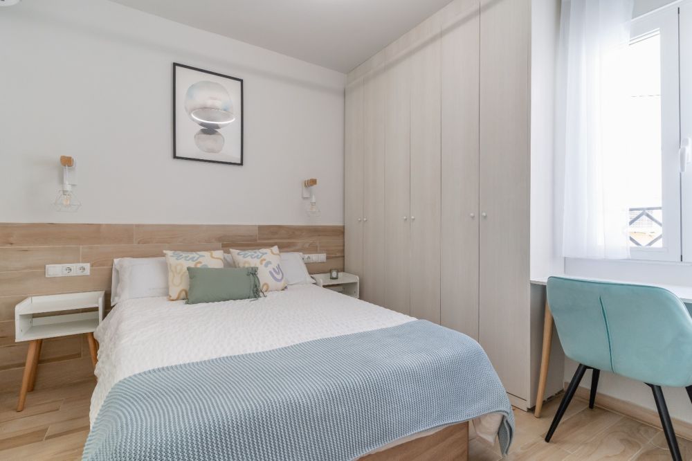 Bright room in Madrid, located in a shared apartment in the neighborhood of Puerta del Angel. The room is equipped with everything you need to enjoy your stay. It has a double bed (135 cm) with storage under the bed, a large double closet, TV, air conditioning, a desk with chair and a lamp that can also be used to charge your cell phone. In addition, the room has a private bathroom for convenience. The room has its own lock on the door and a window with an outside view, making it perfect for young international students and workers. *Bed linen is not included, only the mattress cover is provided. - Don't smoke - Pets are not allowed - Parties are forbidden - Take out the trash daily - Short-term visits are allowed - be informed that in this flat a device has been installed in order to allow the monitoring of the noise level (decibels) 24 hours a day. The system emits an alert whenever the sound level exceeds the maximum allowed by the Community of Madrid, mainly between 11pm and 6am.