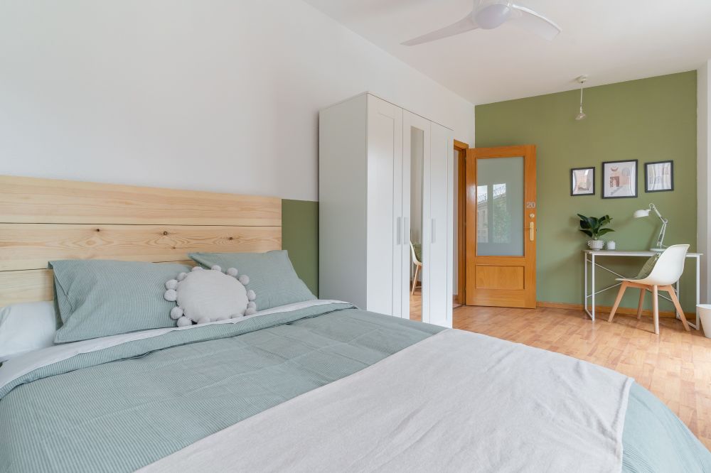 Spectacular double room in Cuatro Caminos in a shared apartment ideal for international students and young professionals. The room is equipped with everything you need to enjoy your stay, it has a single bed (135 cm) with storage under the bed, a double closet with integrated mirror, ceiling fan, a desk with chair and lamp and a bedside table. The size of the room is 16.01 m2, it has a balcony overlooking the main street and a window with window box, central heating and also has its own lock on the door for security. This room is located on the third floor of the building and shares the bathroom that is in common areas with room 21. The kitchen and dining area is located on the 3rd floor and is shared with the tenants of the 3rd and 4th floor exclusively. For more details we invite you to view the floor plan and see the location of the room on floor 3. *Bed linen is not included, only the mattress cover is provided. - Don't smoke - Pets are not allowed - Parties are forbidden - Take out the trash daily - Short-term visits are allowed - be informed that in this flat a device has been installed in order to allow the monitoring of the noise level (decibels) 24 hours a day. The system emits an alert whenever the sound level exceeds the maximum allowed by the Community of Madrid, mainly between 11pm and 6am.
