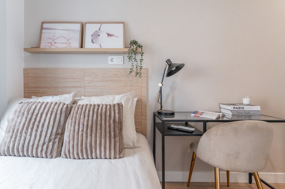Spacious room located in the Carabanchel neighborhood, in a shared flat ideal for international students and young professionals. The room is fully furnished to ensure a comfortable stay:It has a 120 cm double divan bed with storage underneath, wardrobe, desk with chair and lamp, air conditioning, and a private lock on the door for your security. With a size of 7.26 m², the room has a window that provides natural light. It is located on the third floor of the building and has a private bathroom. The common areas, such as the kitchen and dining room, are shared exclusively with the tenants on the same floor. Each room has its own private bathroom, ensuring more comfort and privacy. Bed linen is not included, only a mattress cover is provided. No smoking No pets allowed No parties allowed Short-term visits allowed be informed that a device is installed in this flat to monitor the noise level or decibels 24 hours a day, sending an alert when the sound level exceeds the maximum allowed by the Community of Madrid, mainly between 11:00 PM and 6:00 AM.