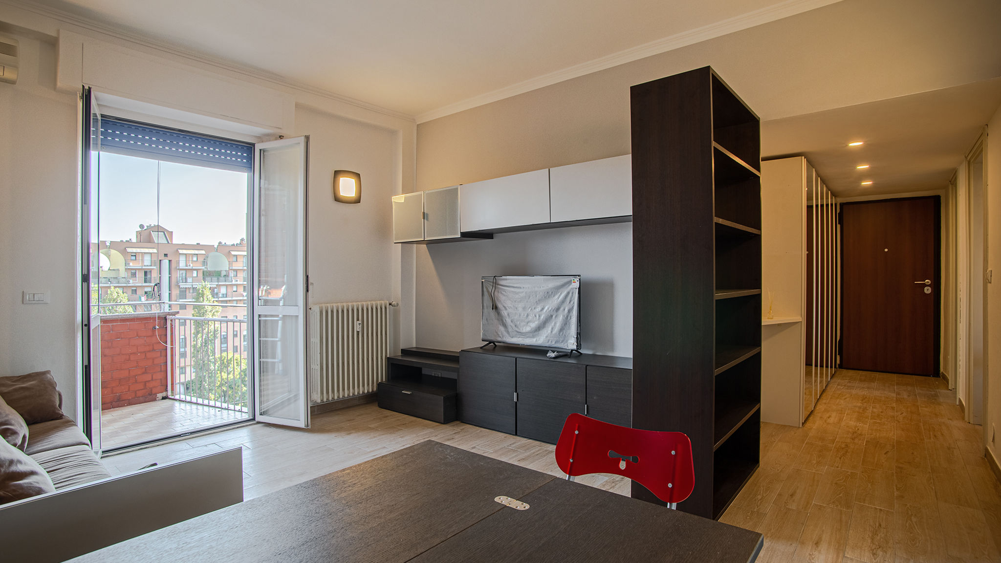 Bright and cosy three-rooms apartment on the sixt floor in a strategic area of the city, well connected to main tourist attractions and to the metro easily reachable on foot. The kitchen is complete with dishes and appliances: dishwasher, fridge, oven, and kettle. The sleeping area consists of 1 bedroom with 1 double bed and 1 double sofa bed. The apartment is for non-smokers only and is provided with crib, wifi, television, toiletries, washing machine, hair dryer, iron and ironing board. The house is at your complete disposal and we've put care in every detail in order to welcome you in a clean and comfortable space, whether you're staying for business or just passing by to visit the city. You're welcome, take care of it!