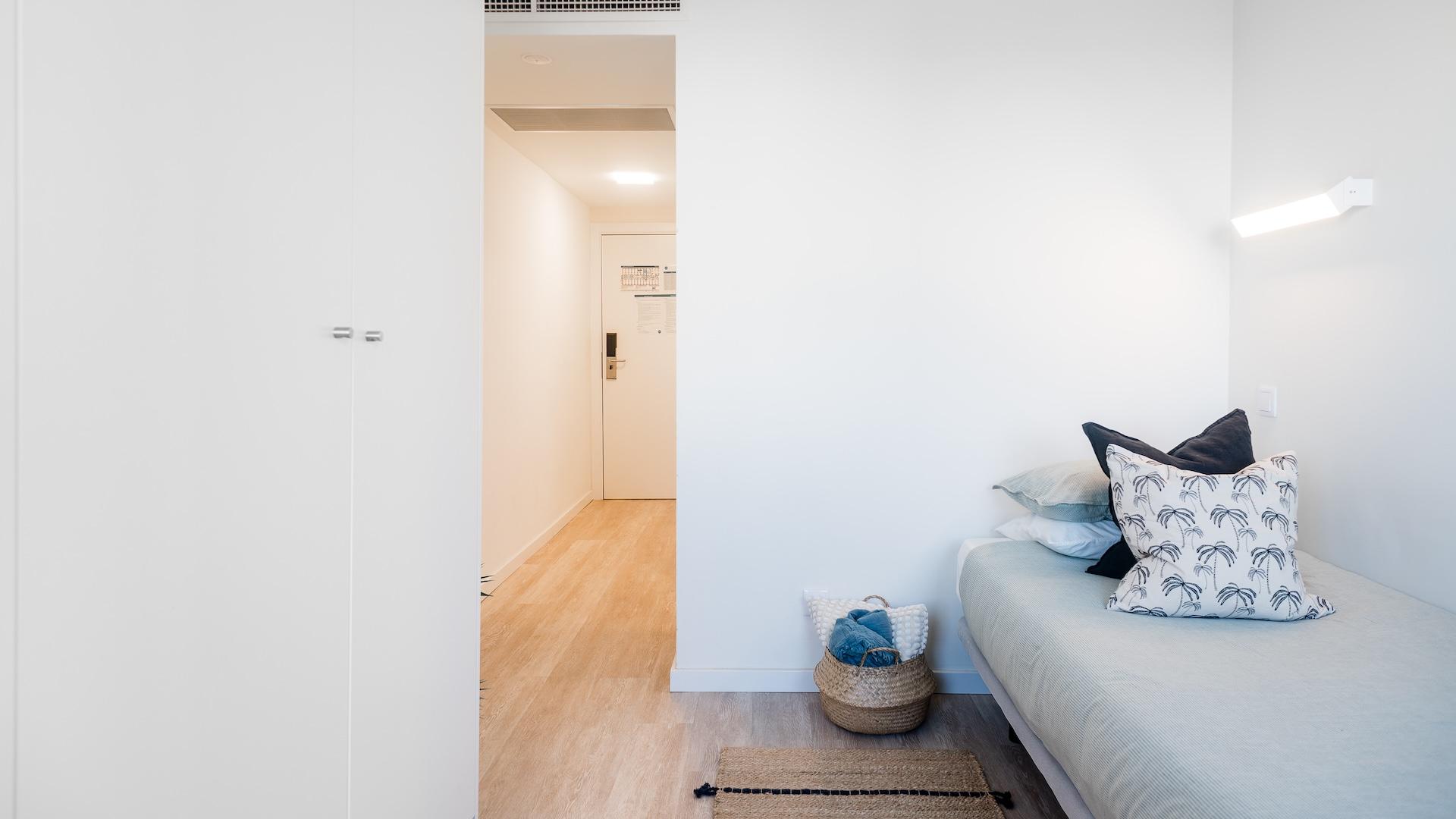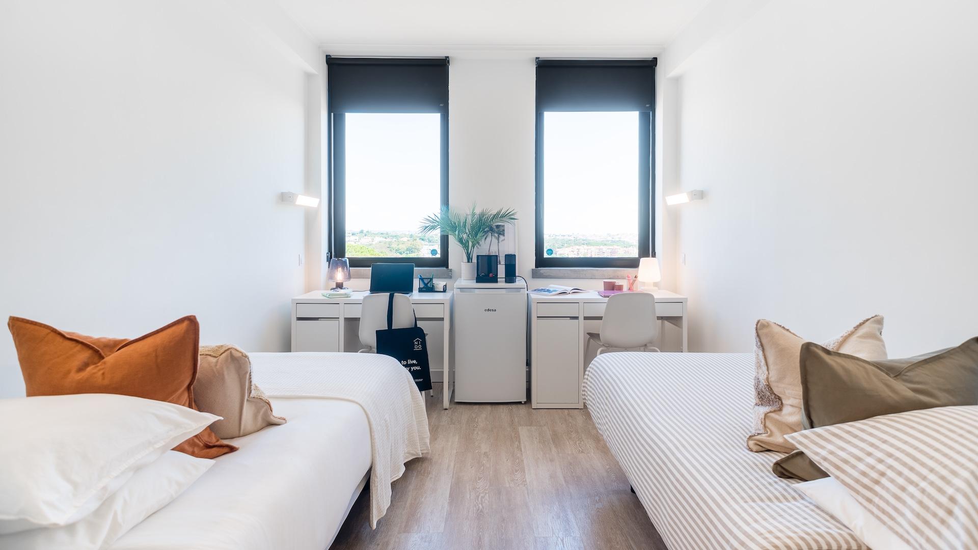 Estoril has everything you need for the ultimate student experience: stylish studios, incredible social spaces, year-round events…and so much more.Our Double Studios Plus have been thoughtfully designed to ensure your privacy and comfort, whilst giving you access to a range of incredible common spaces and year-round residence events so you can feel right at home. Every Double Studio is 15m2 and has: -Shared bathroom in the room with a shower -Shared kitchen -Compact Single bed with comfy mattress - Wardrobe with drawers and hanging space - Study desk and chair -Bedding & Kitchen Pack Nespresso Machine These Double Studios are located on floors 0, 1, 2, & 3. All this is included in your rent as standard: - Utility bills (no extra fees for electricity, water or gas) - Super fast WiFi - Friendly residence team and 24/7 security - Cozy common spaces - Year-round events - Access to the App and Wellbeing Hub (resources to manage your emotional wellbeing) - Exclusive local discounts Come live with us at Estoril! Just a couple of minutes from the city centre and all major universities in Estoril. We’ve thought of all the details, so you don’t have to. Make Estoril your next home when you book your stay and experience premium living.