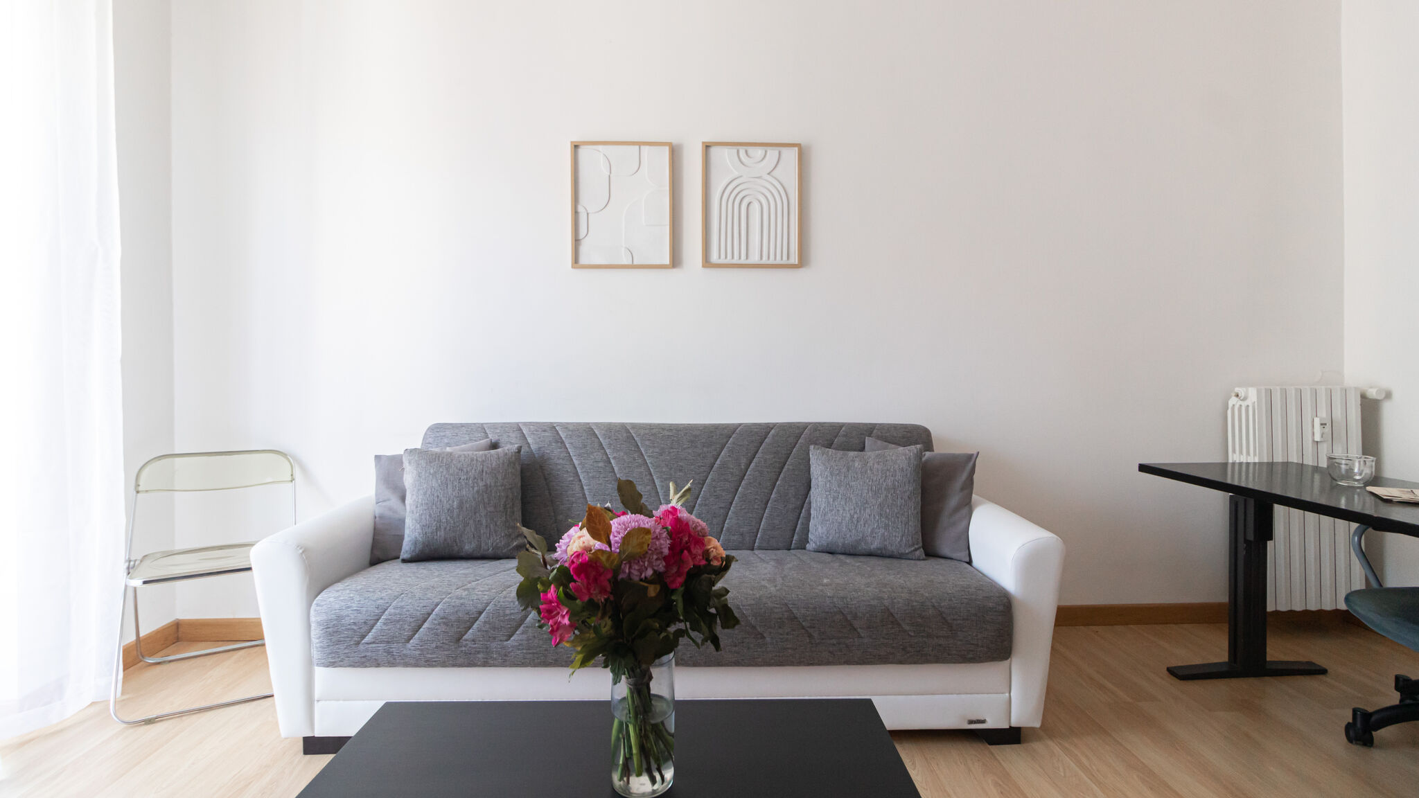 Located on the fifth floor of a Milanese building, this 60-square-meter apartment offers a welcoming and functional environment, perfect for those looking for comfort and convenience during their stay in Milan. Its location and its organization of spaces make it ideal for short and medium term stays, both for business reasons and for tourism, comfortably accommodating up to three people. The apartment is developed in an intelligent and rational way, with a bedroom that guarantees the right rest and privacy. The living room represents the heart of the house, spacious and bright, furnished to offer both moments of relaxation and conviviality, and the space for smart working and studying thanks to a desk with ergonomic chair. The kitchen, well organized and equipped, allows you to prepare your meals in total autonomy, turning every culinary moment into a pleasant experience. The bathroom is modern and functional. The equipment is completed by a balcony that runs around the perimeter of the apartment to enjoy natural light, fresh air and urban views. The apartment is equipped with all the essential services to ensure maximum functionality: fast Wi-Fi to always stay connected, air conditioning in the room and living room for the warmer months, washing machine ideal for longer stays. Every environment has been designed to meet the needs of those who want to feel at home, even if they are traveling. Located in one of the most convenient and growing areas of Milan, the apartment in Via Negroli 11 offers the perfect combination of residential tranquility and immediate connection to the city center. A few steps from the new M4 metro line - Argonne stop, you can reach the historic center and the Duomo in less than 10 minutes, or Linate airport in just 5 minutes: a unique advantage for those traveling for work or pleasure. The area is also served by numerous buses and trams, in addition to the Milano Forlanini railway station, which connects quickly with the hinterland and other Lombard destinations. Via Negroli is located in the Acquabella/Argonne district, an elegant and quiet residential area, characterized by tree-lined avenues, neighborhood shops, supermarkets, bars and local restaurants. Nearby are the Argonne Park and the Gardens of Via Sidoli, perfect for a walk or for those who love outdoor sports. In addition, thanks to its proximity to the Milan Railway Passante, it is possible to reach the Santa Giulia Arena quickly and comfortably by public transport.