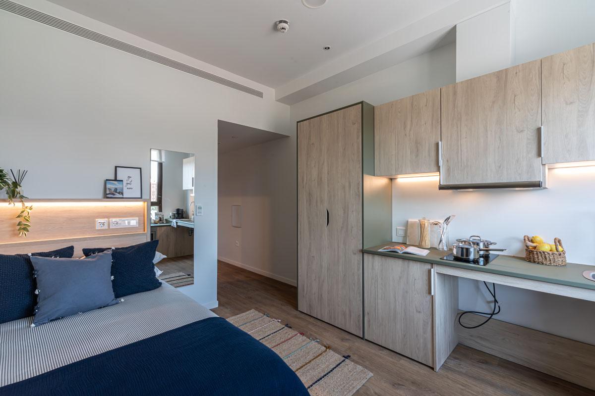 Welcome to Malvarrosa, your new home by the sea. Just minutes from Valencia’s main universities and a short walk to the beach and city centre, our flex-living accommodation offers the perfect balance of study, social life, and relaxation. Next to the Cabañal neighbourhood, the residence features stylish en-suite rooms, social and study spaces, a 24/7 gym, laundry, and a rooftop terrace with jacuzzis and sea views. Whether you're studying, dining at our on-site restaurant, or relaxing with friends, Malvarrosa is designed to support your lifestyle. What’s included in your Premium Plus Studio: * Compact double bed * Study desk and chair * Wardrobe with shelving * Full-length mirror * Ensuite bathroom (wheelchair accessible) * Kitchenette with: 2-ring induction hob, combo microwave oven, fridge with freezer shelf, sink, and plenty of storage Perfectly located for students in Valencia: * 10-minute walk to UPV (Universitat Politècnica de València) * 15-minute bus ride to Universitat de València * 30-minute walk to ESIC and Universidad Católica de Valencia (UCV) With bi-weekly cleaning, in-house laundry, 24/7 Residence Team, the App, and a full calendar of events, you’ll feel right at home from day one. Make Malvarrosa your new home and join the community today!